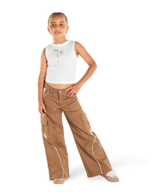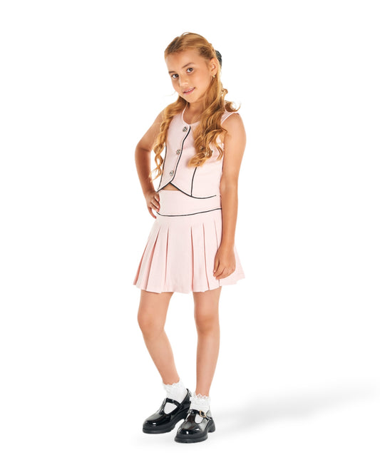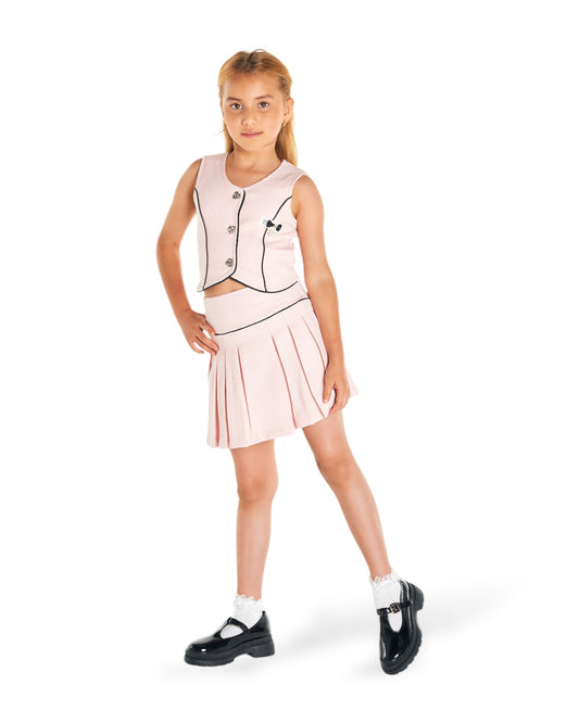 Conjunto Falda Guipiur Juvenil | Chaleco Lino y Correa