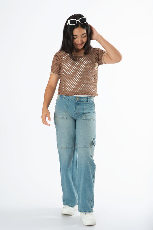 Proveedor:MUHONI TEENSPrecio habitual $163.900,00 COPPrecio habitualPrecio unitario / porConjunto blusa maya crochet con jean cargo dirty
