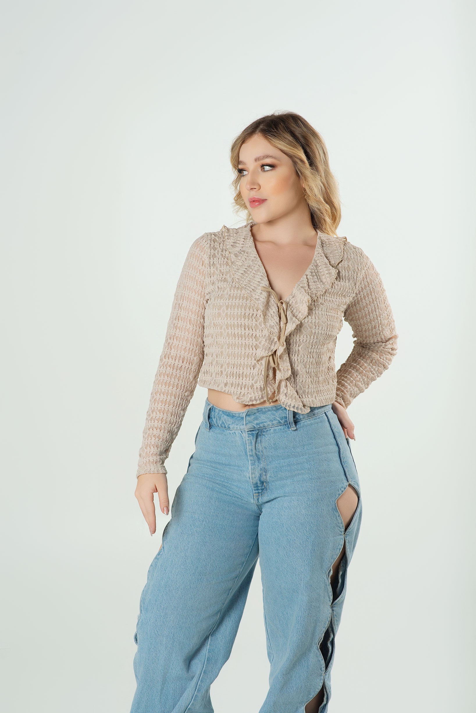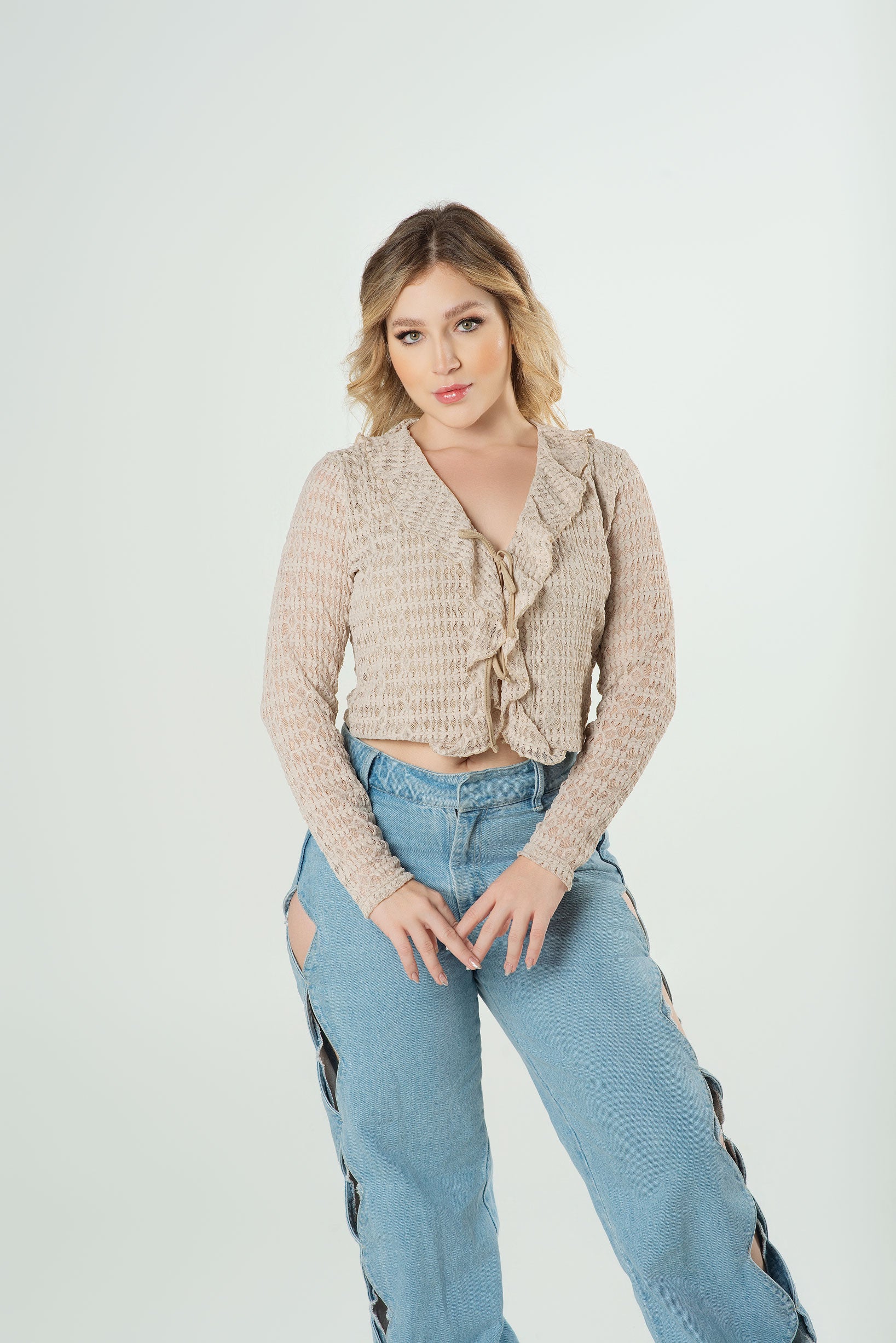 Blusa Manga Larga Boleros | Texturizada Elegante