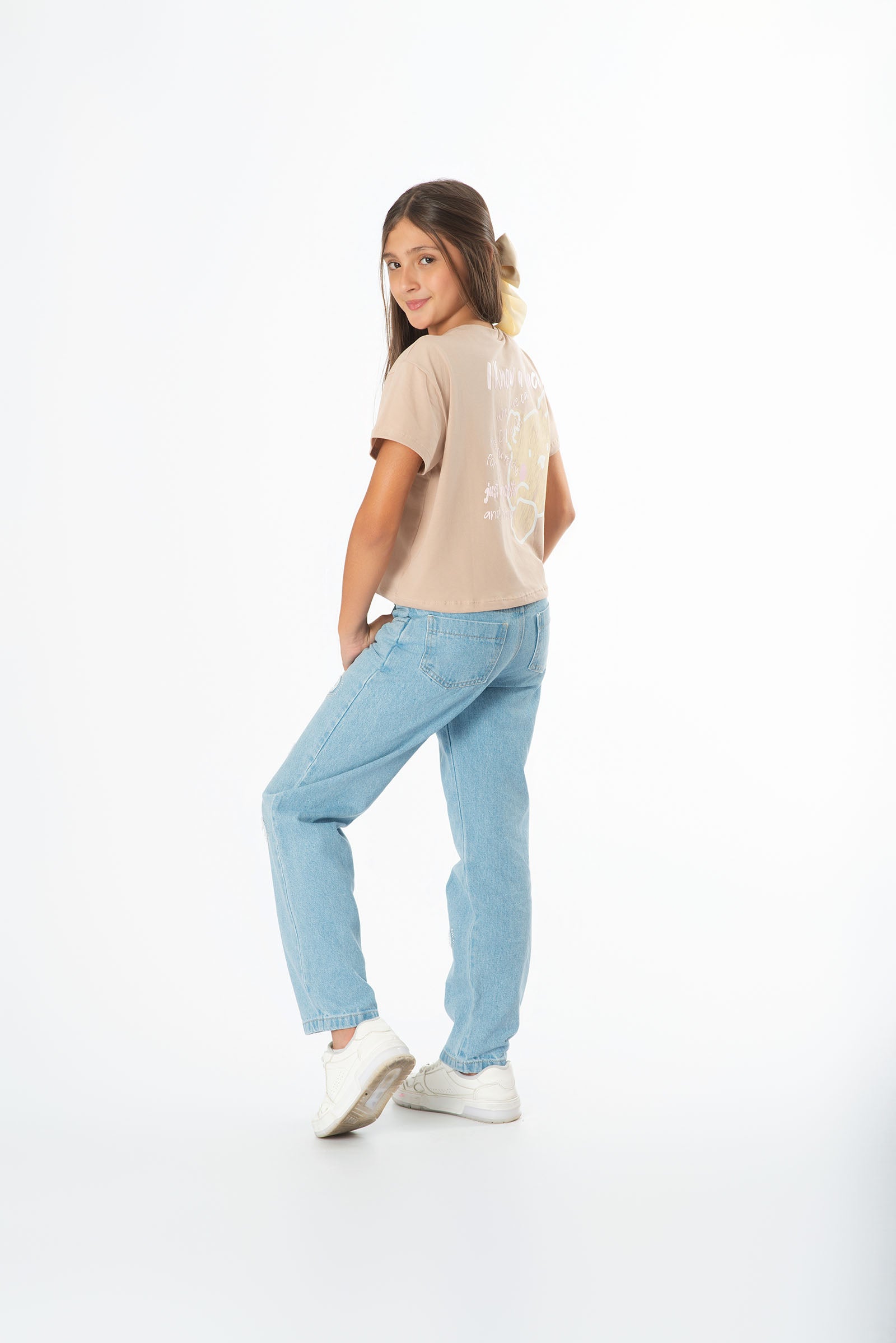 ¡El diseño más adorable de la temporada! La Camiseta Juvenil Crop Oso es la combinación de estilo y comodidad que tu hija no se quitará. Selecciona su color favorito (Mantequilla, Caqui o Azul) y haz clic en "Añadir al Carrito". ¡Un must-have garantizado!