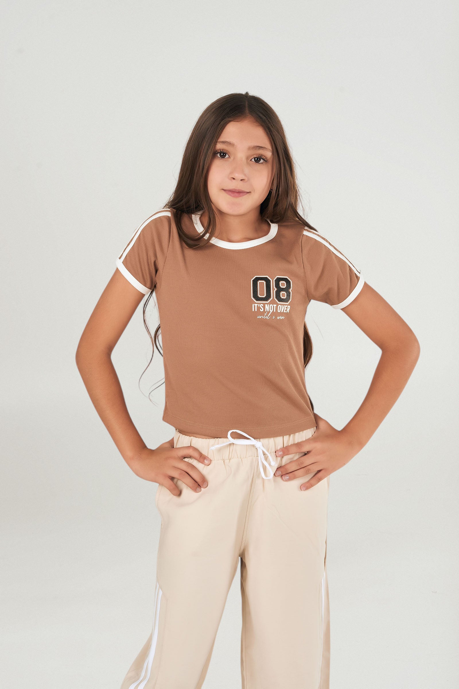 ¡Dale a tu look ese toque de actitud deportiva y estilo Rib! La Camiseta Niña Rib Crop Estampado 08 es la prenda que no puede faltar en el armario de las fashionistas más jóvenes. Añádela al carrito ahora y consigue el vibe retro que está marcando tendenc