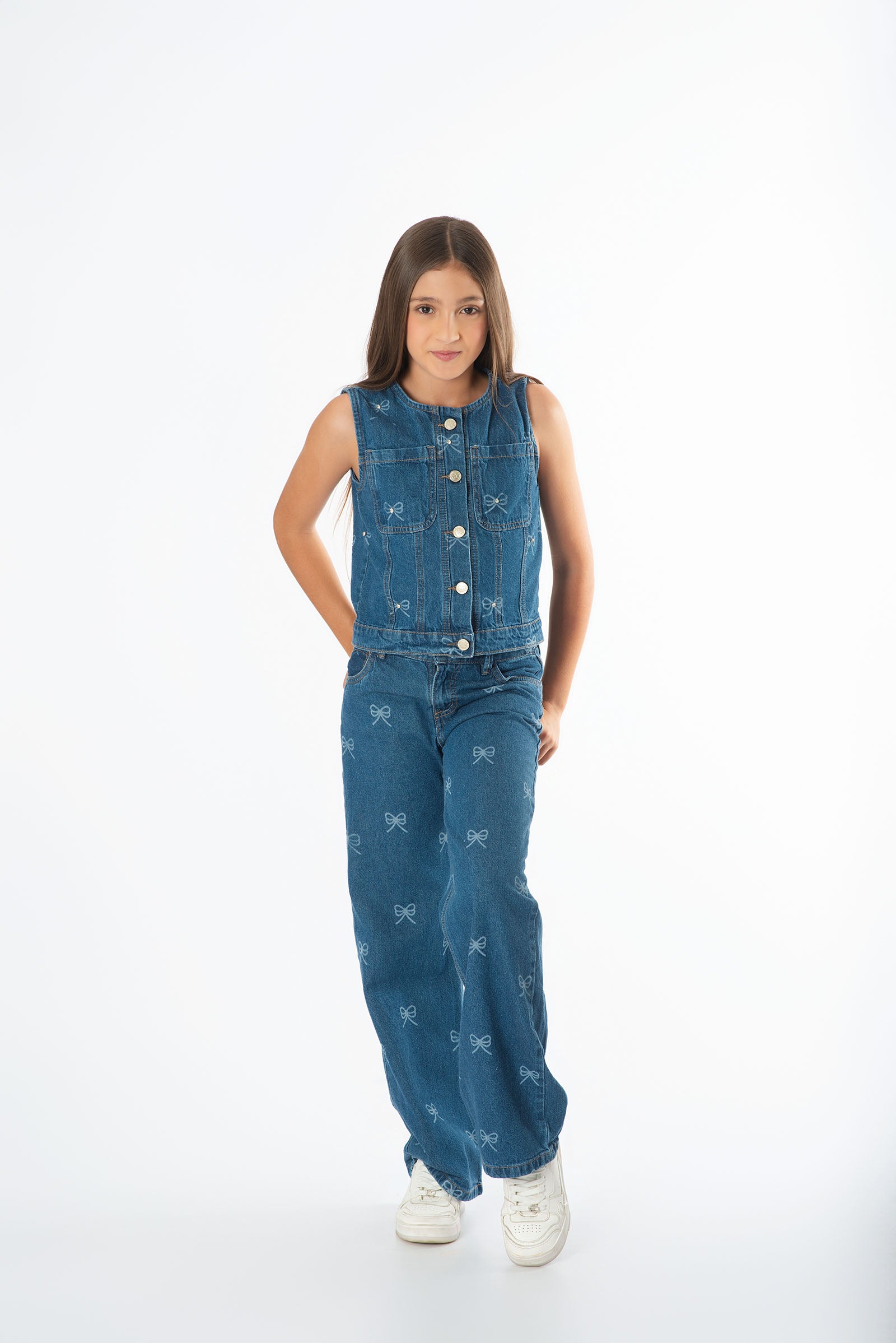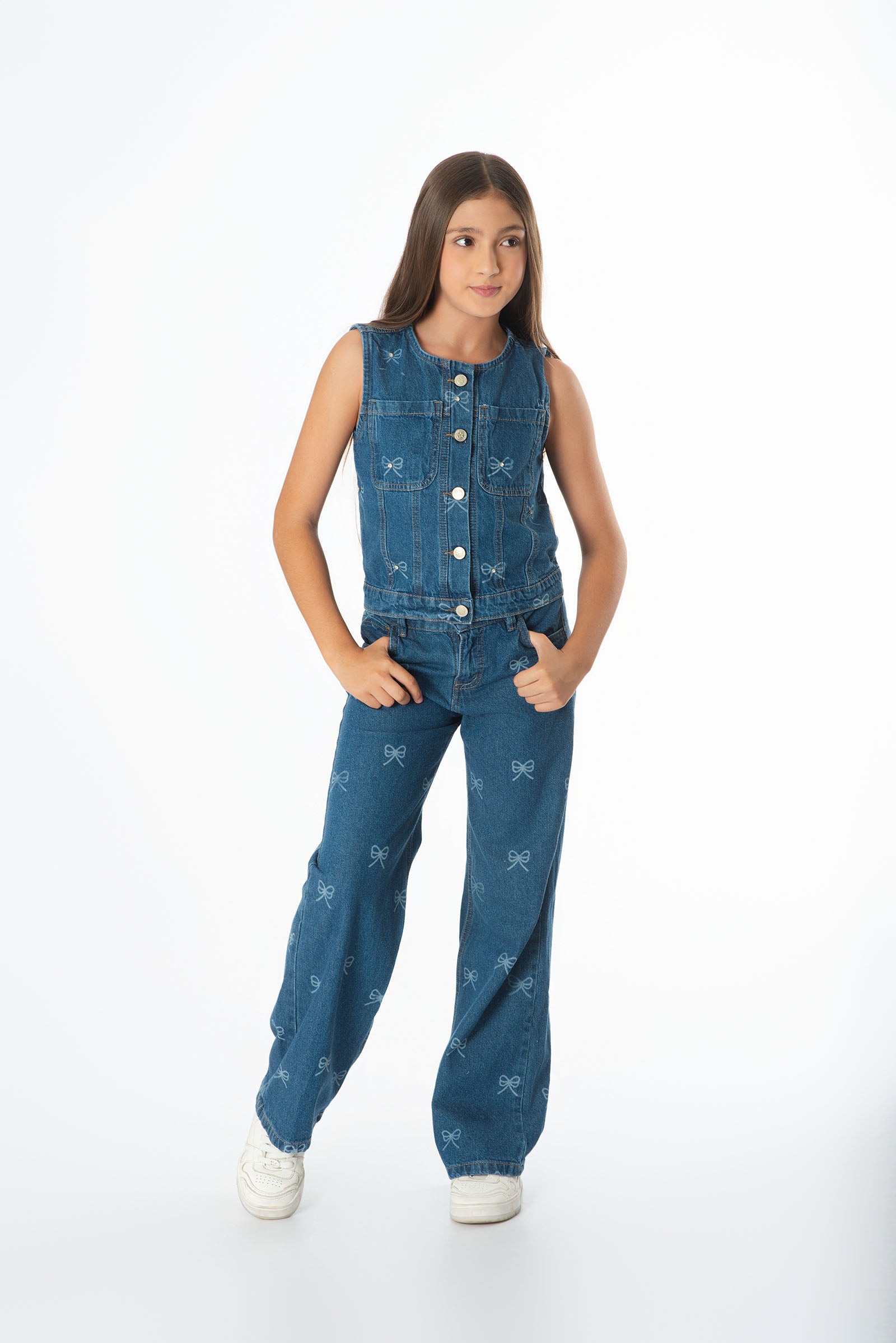 Conjunto Denim Moños Juvenil | Chaleco & Jeans Wide Leg