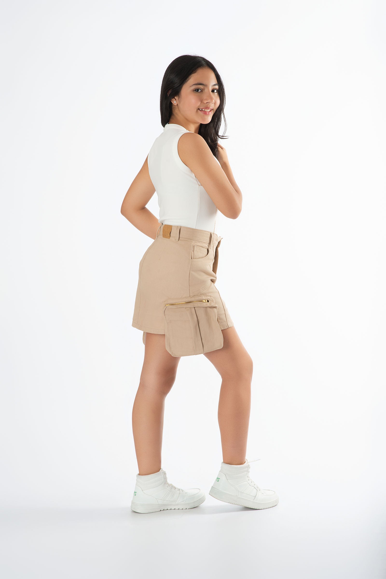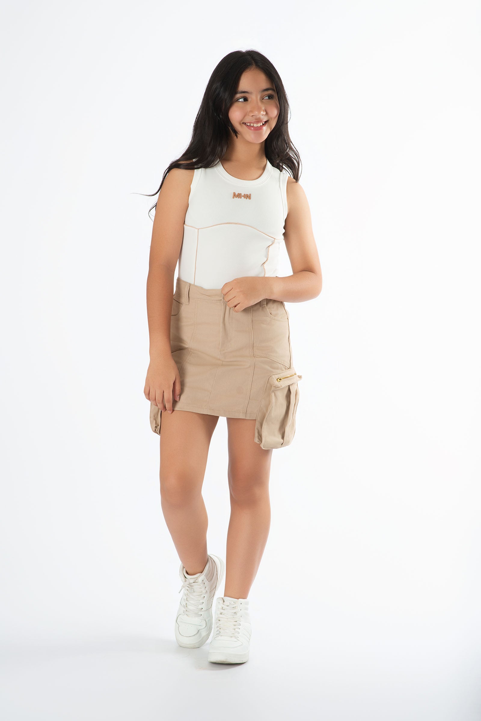 ¿Buscas un outfit cómodo, moderno y con actitud para tu niña? Este conjunto falda cargo con cierre combina un body sin mangas en rib elástico con una falda cargo de drill por encima de la rodilla. Es la mezcla perfecta entre estilo urbano y movilidad: se ve increíble y resiste su ritmo diario.