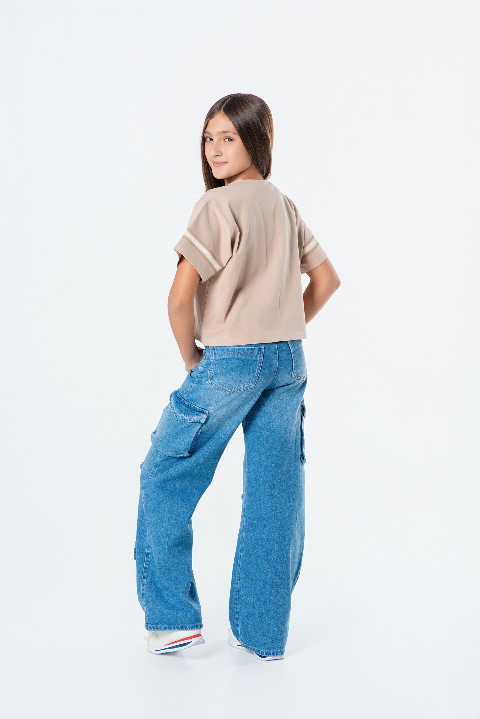 ¿Buscas un look urbano, cómodo y duradero para tu hija? Este conjunto jeans cargo para niña con camiseta deportiva combina tendencia y resistencia para acompañarla en clases, salidas o fines de semana. La lycra fría de la blusa mantiene la frescura, mientras que el denim rígido de los jeans soporta el trote diario sin perder forma. Un outfit que la hace sentir segura, libre y con mucho estilo.