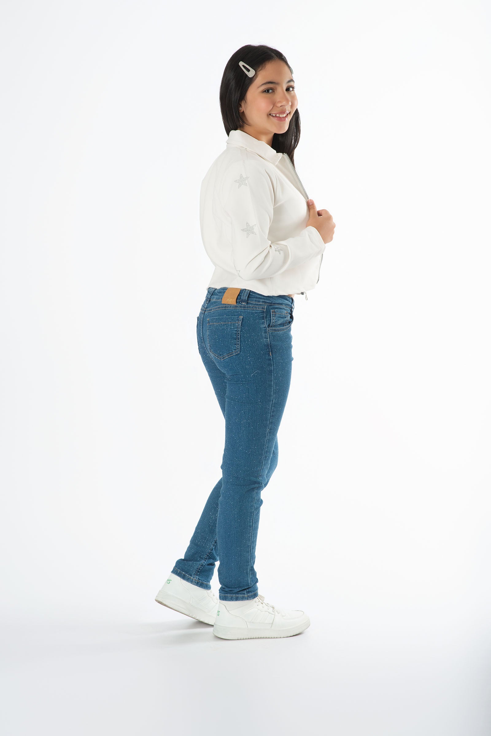 Luce un estilo brillante y cómodo con nuestro conjunto jeans mirellado y blazer con estrellas. Diseñado para chicas que aman destacar sin perder movilidad, este outfit de 3 piezas (blazer corto, crop top y jeans) combina brillo sutil, telas suaves y un calce favorecedor. Perfecto para crear looks que roban miradas en fotos, salidas y celebraciones.