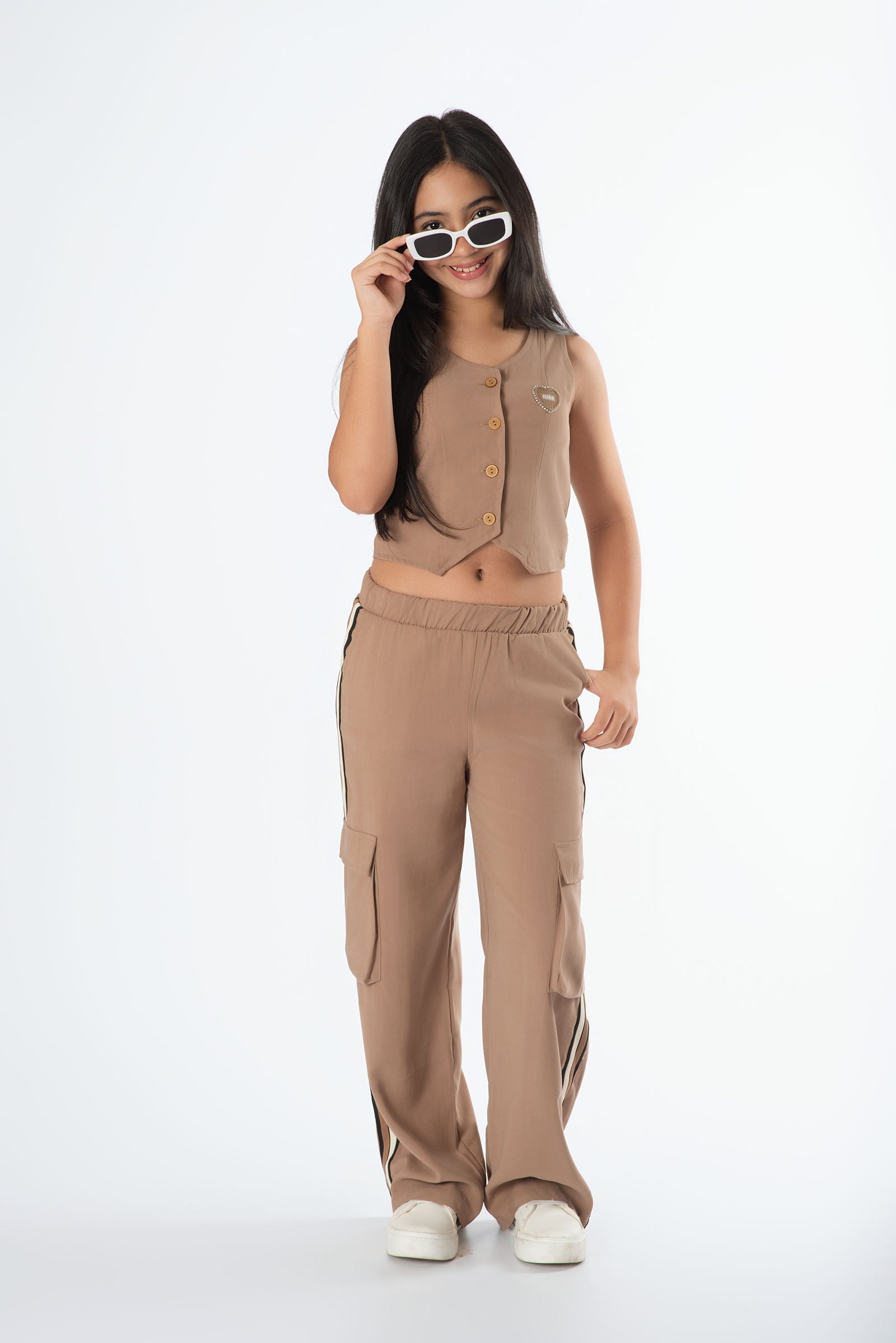 ¿Buscas un look fresco y con personalidad para el día a día? Este conjunto pantalón con chaleco está diseñado para niñas y teens que aman verse cómodas y a la moda. El chaleco cropped realza la silueta sin recargar, mientras el pantalón cargo aporta ese toque urbano que combina con todo. Confeccionado en chalis rayón suave y ligero, es perfecto para clases, salidas o fines de semana.