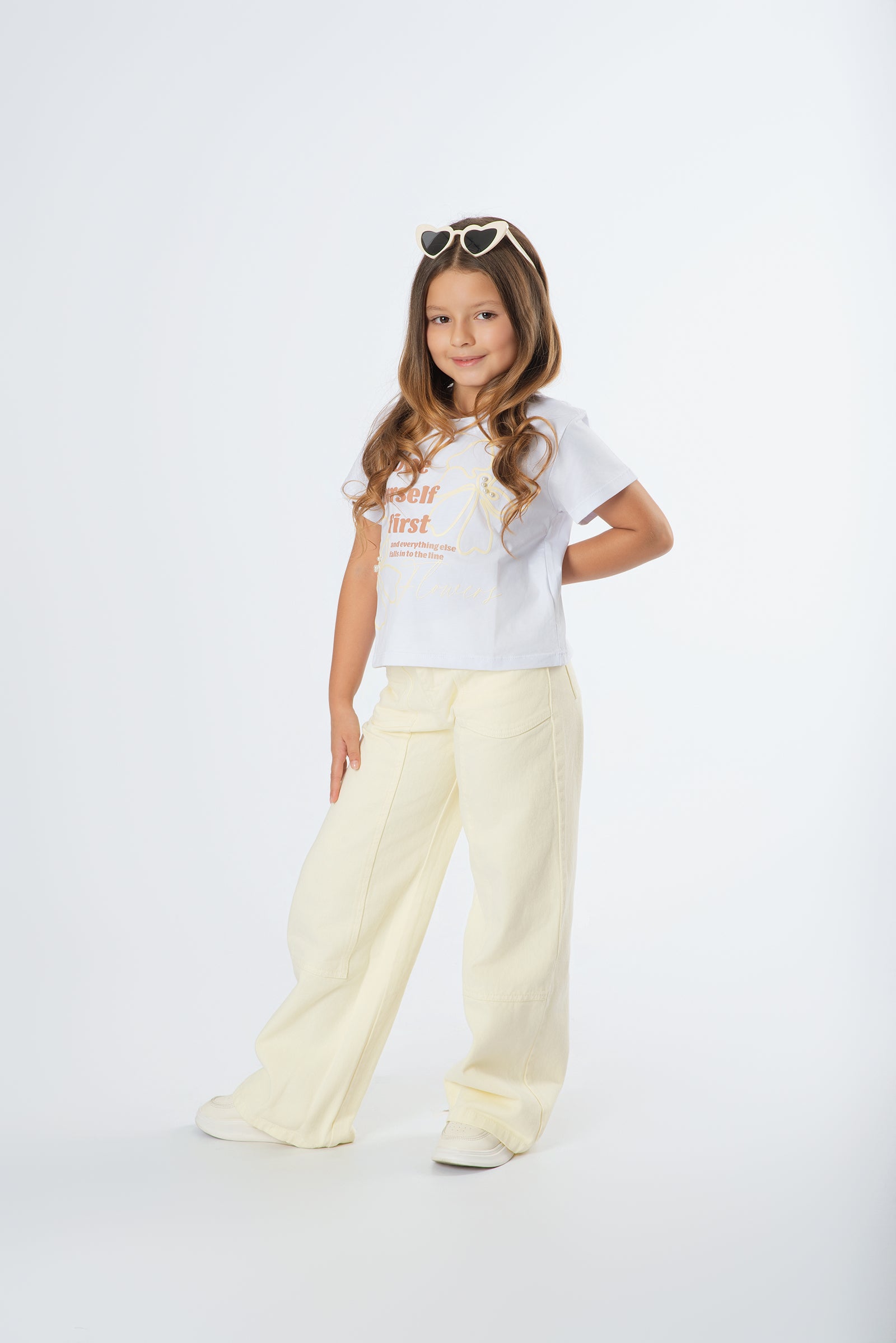 Conjunto Pantalón Wide Leg Perlas | Camiseta Flores y Lazo