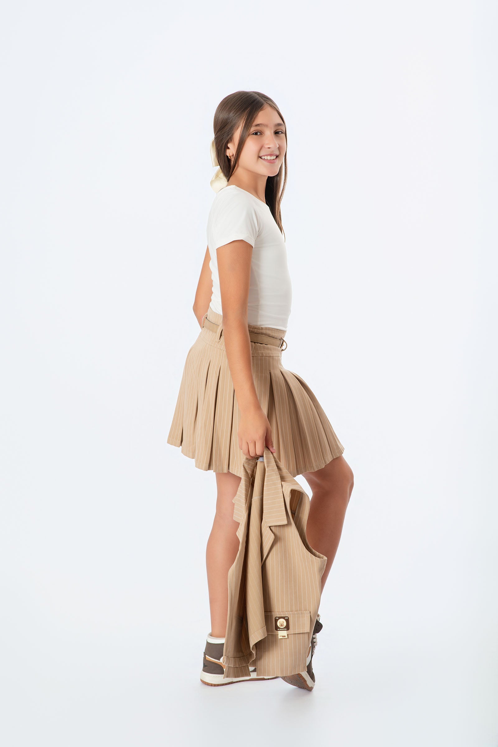 ¡Dale a tu joven el estilo más chic de la temporada! El Set Chaleco y Falda de Tablas con Rayas es una inversión en moda atemporal y tendencia. Elige entre Gris o Caqui y ¡añádelo al carrito para un look inolvidable!